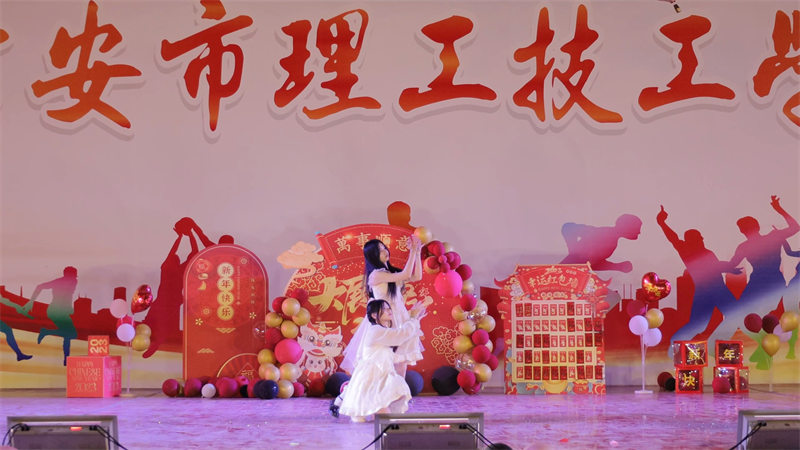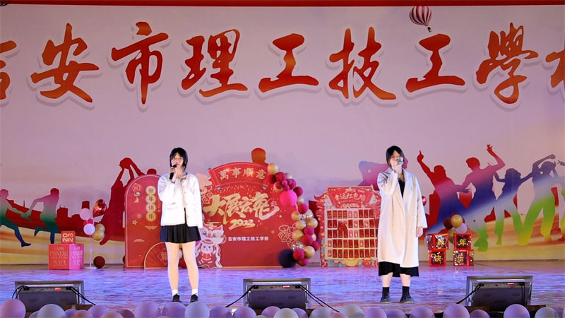 21級百度云二班和22級幼教班的同學(xué)聯(lián)合表演充滿青春活力的舞蹈《串燒》、《冬日》,婀娜多姿,配合默契。